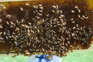 Well, it’s official, our hive has a major problem. We looked in our hive on last Friday, and as Rob pulled up the first few frames we were met with some real disappointing sights; there was no new uncapped brood or eggs in the combs. In fact, as we continued through the entire hive were met with the same situation. We have no new eggs or brood, if there’s a queen in the hive she’s not yet laying and we suspect our hive is queenless. Right now, it seems like our hive is dwindling fast we saw a dearth of bees on the frames.